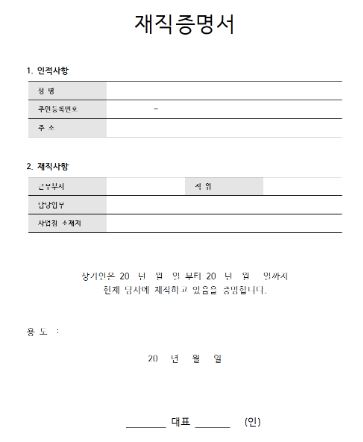 재직증명서 양식 다운로드