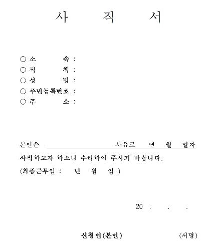 ▼ 사직서 양식이 필요하다면 아래 링크를 통하여 사직서 양식을 무료로 다운로드받으시길 바래요.